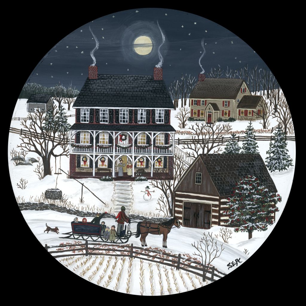 Papa has taken all of the children for a moonlight sleigh ride. Mama and Grandma are calling them in the house to warm up with a hot cup of cocoa and freshly baked cookies...